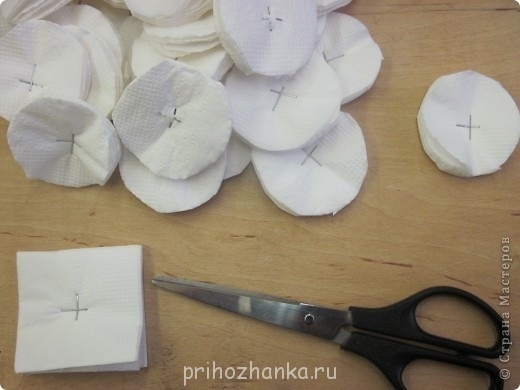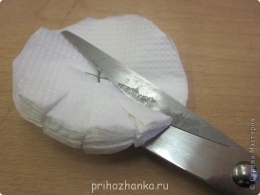 Либо проволокой либо ниткой закрепите сложенную салфетку посередине. Концы салфеток закруглите ножницами и разделите слои салфетки один за другим. Такие цветы можно куда-то подвесить. Еще можно сбрызнуть лаком с блестками