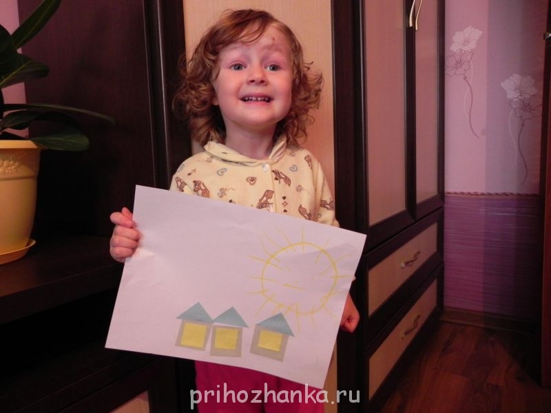 И ей всего два года?! Моему Ванюше год и 8, но дальше того, чтобы разрисовать каракулями обои, у него дело не идет. А Ваша девочка и аппликацию делает и рисует.... Молодец!