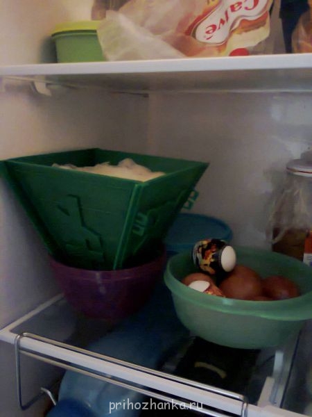 7. Переворачиваем форму - выстилаем форму тройным слоем марли - в марлю выкладываем творожную массу - прикрываем массу марлей - ставим в сито под пресс. На 12 часов отправляем в холодильник
