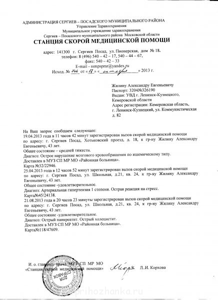 Копии мед. док. о том, что батюшка лежал в больницах,