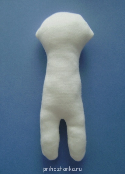 А это уже сшитое и набитое холлофайбером тельце. Я использовала трикотаж, можно тильдовскую ткань использовать (бязь ). Белую или телесного цвета.