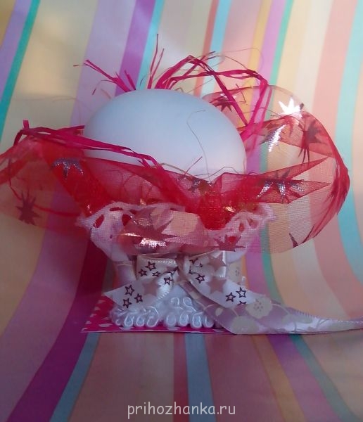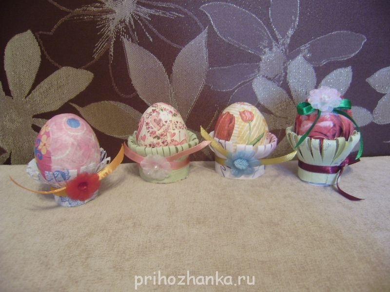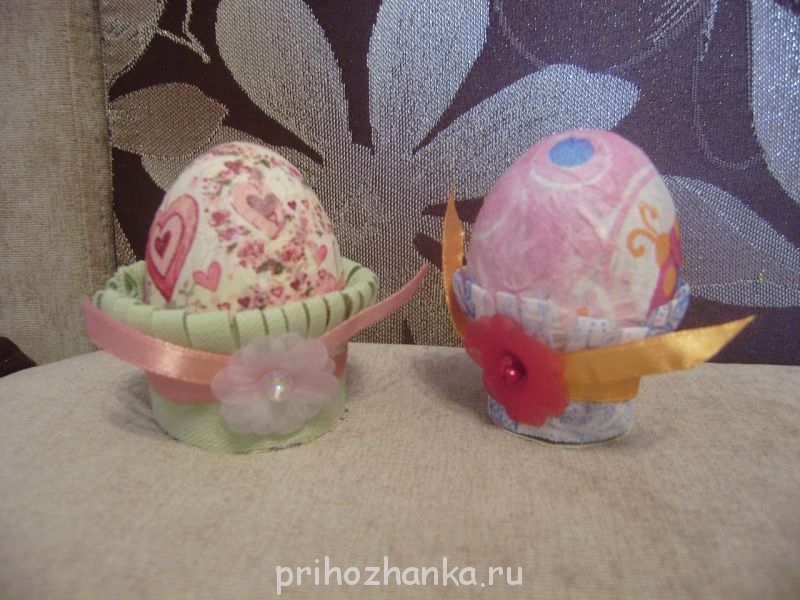 Потом лентами, кружевом и тд украшают подставку под яичко