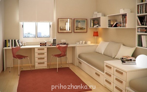 как совместить зал и рабочее место, например? какими деталями выделить? на чем акценты?
