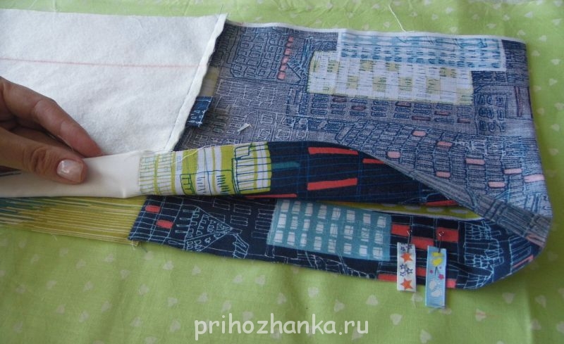 4. Сверху помещаем ткань лицевой стороной к лицевой стороне подклада