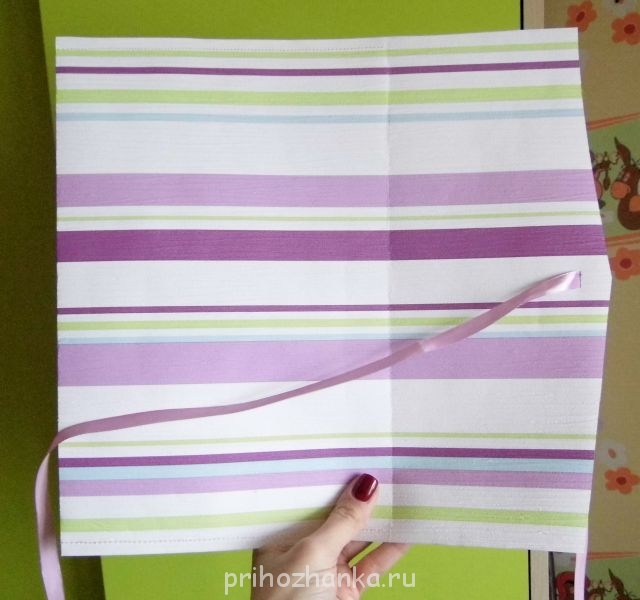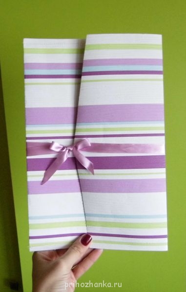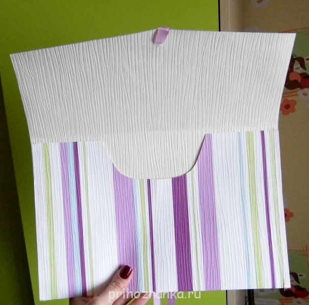 Вот так выглядит готовый кармашек (на "крышечке " сделала прорезь, через которую протянула ленту )
