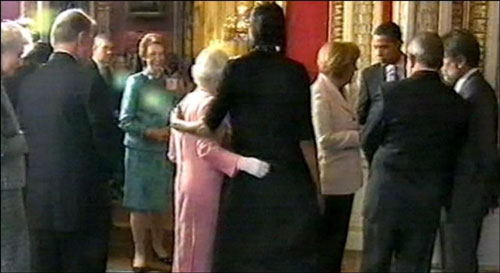 ejik_VTumane, в статье написано, что до мадам Обама за Королеву хватался некий австралийский политик. О его загадочной смерти в статье ничего нет - стало быть - хвататься за Королеву опасно, но не смертельно.