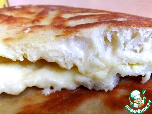 Раскатать очень осторожно, чтобы не прорвалась начинка, в лепешку толщиной 1 см.