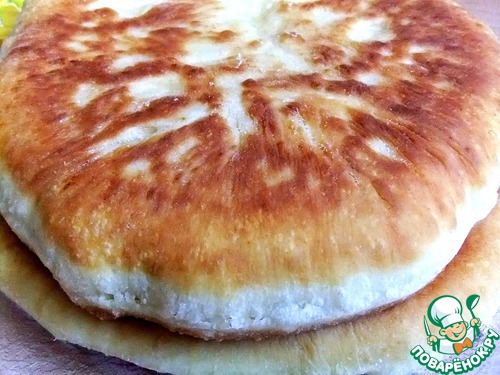 Жарить на среднем огне в растительном масле без запаха с двух сторон до румяной корочки. Пирог сильно поднимается.