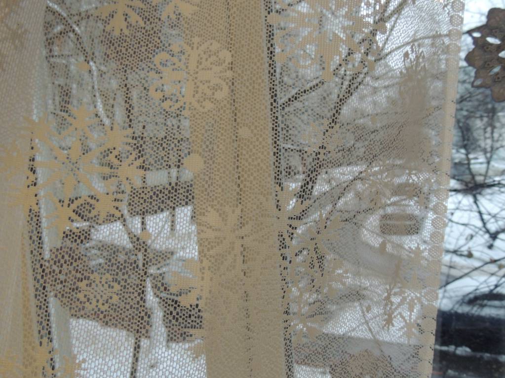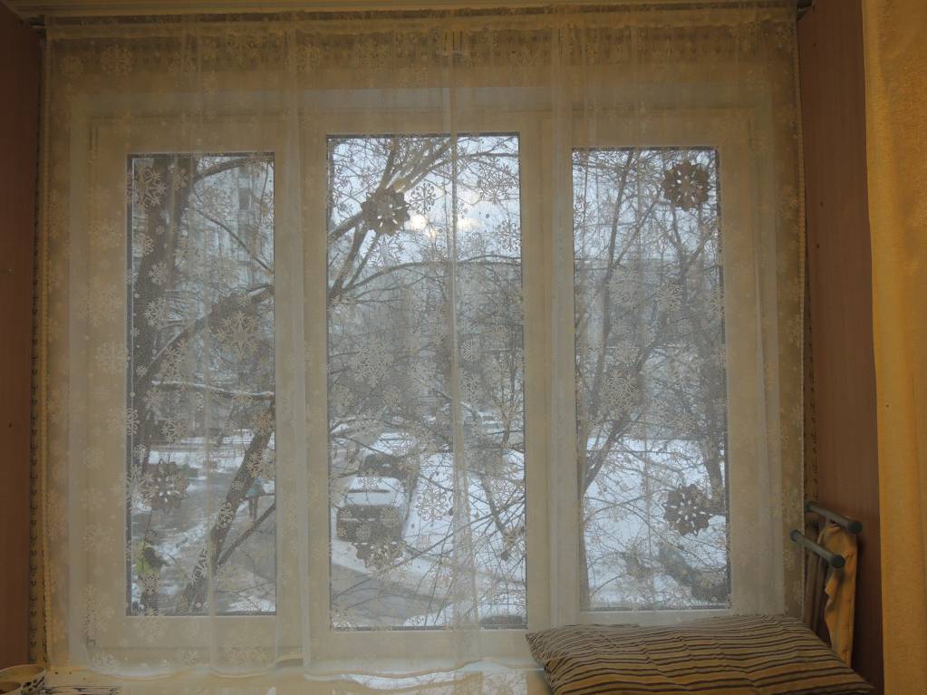 А окошко мы просто украсили:снежинки из Фикспрайса по 47 р и тюль со снежинками из Икеи