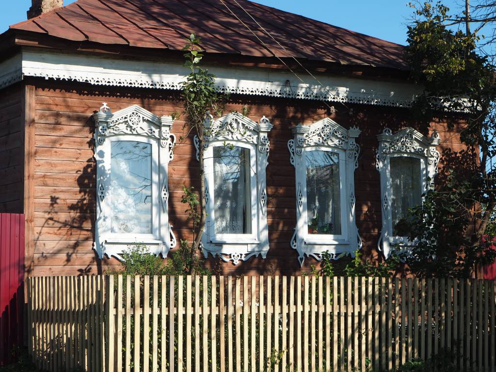 Выдался удачный солнечный денек и с большим удовольствиям побродила по улицам поселка, полюбовалась на резные окна домов.