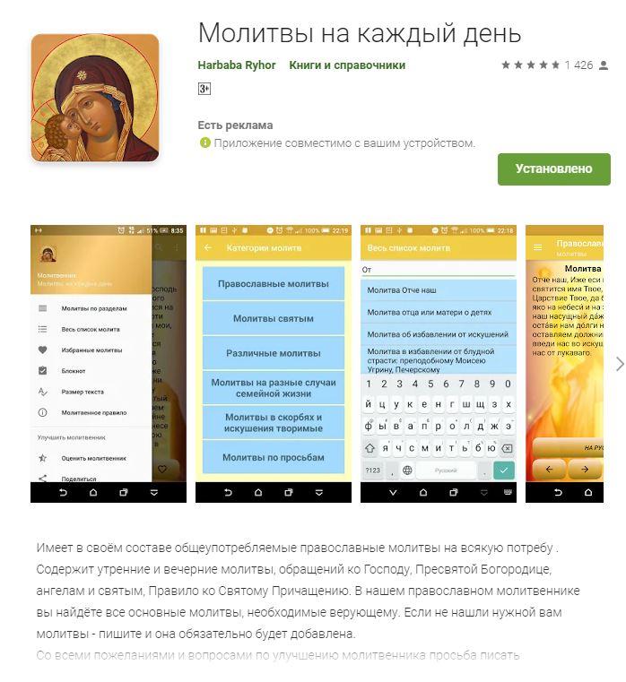 Вчера в PlayMarket по запросу "православные приложения" было найдено очень много приложений. Я посмотрела, отзывы почитала, но так и не стала ничего загружать. Очень много приложений, где можно читать Библию, молитвословы, Жития Святых, календари...