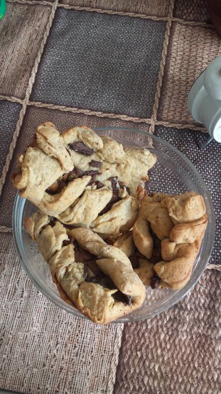 А это мои пирожки из слоёного теста. Само слоёное тесто получилось по консистенции какое-то не очень слоёное, сахар в рецепте просто заменяла измельчённым топинамбуром - сладости не дал. Но всё равно вкусно.