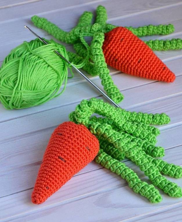 Сочный оранжевый и зеленый отлично дополняют друг друга. Можно было и осьминожек связать, но вот ручки чесались сотворить морковки. .