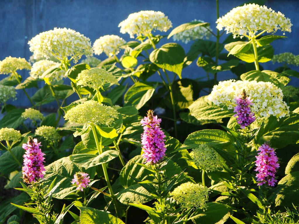 Сочетание гортензии и дербенника
