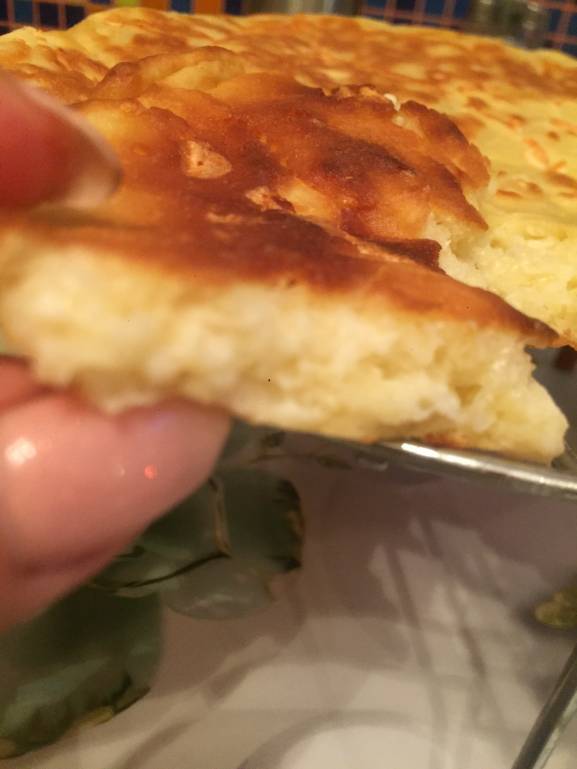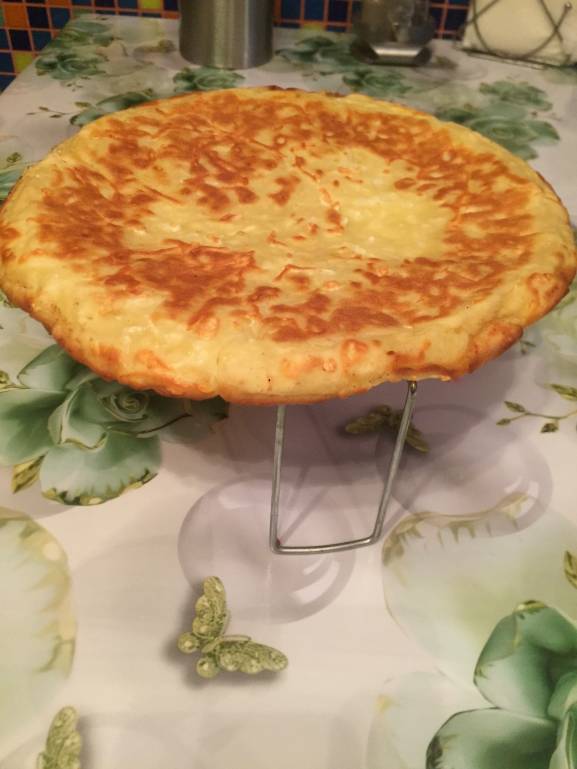 Нагрейте сковороду и смажьте небольшим количеством масла. Вылейте все тесто и закройте крышкой. Держите на среднем огне, пока верх не схватится (около 5 минут). Аккуратно переверните, снова накройте крышкой и жарьте еще пару минут.
