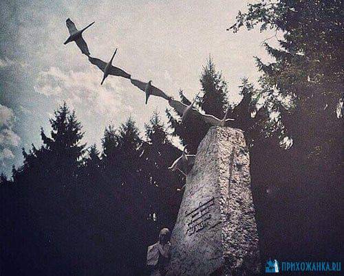 После посещения памятника Расул Гамзатов написал стихотворение, но очень сложно ему было подобрать рифму на слово гуси — он специально звонил в министерство культуры Северной Осетии, с просьбой заменить слово «гуси», словом «журавли». Такое позволение ему было дано.