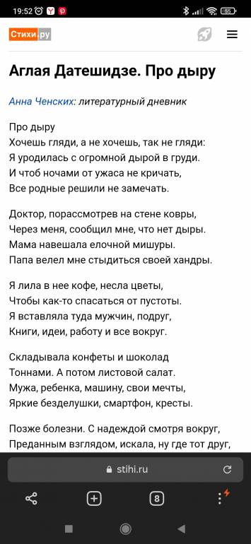 Есть достаточно известное стихотворением Аглаи Д. о дыре в груди.